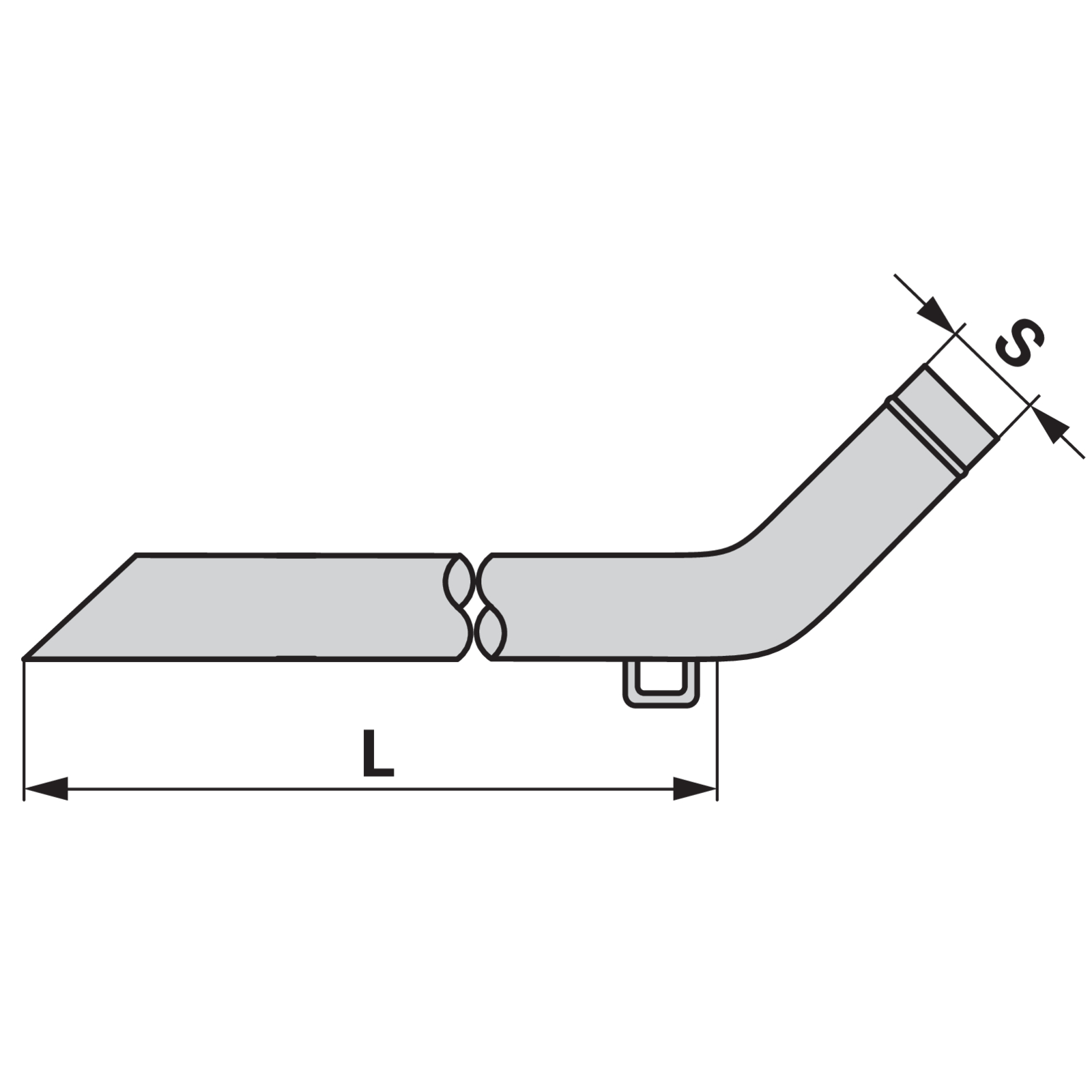 | Bezeichnung | Saugrohr 45 Grad, mit Schlauchtülle, AD 152 x L 4.000 mm, verzinkt |