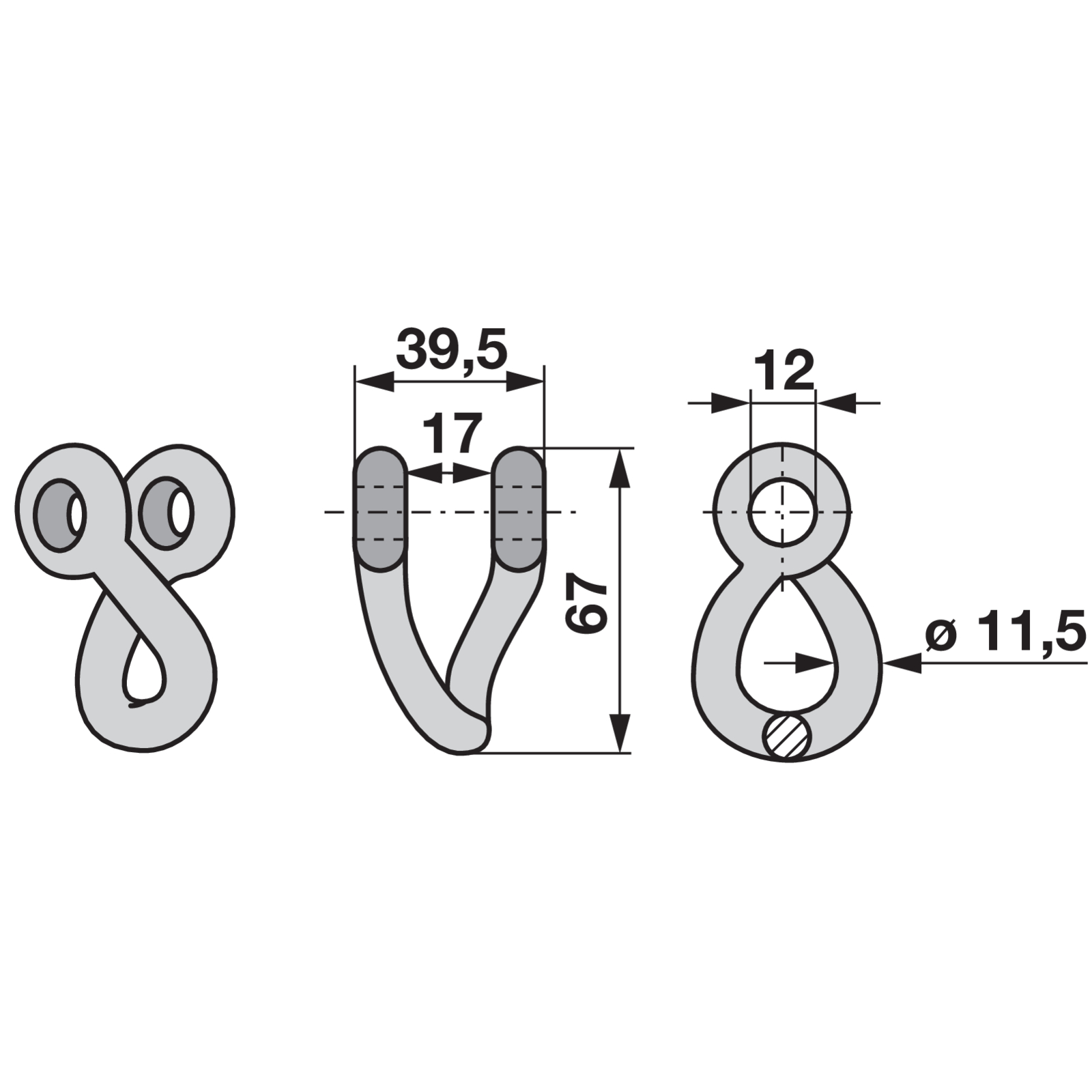 | Bezeichnung | Schäkel 39,5x11,5 L=67 Lo 12 |