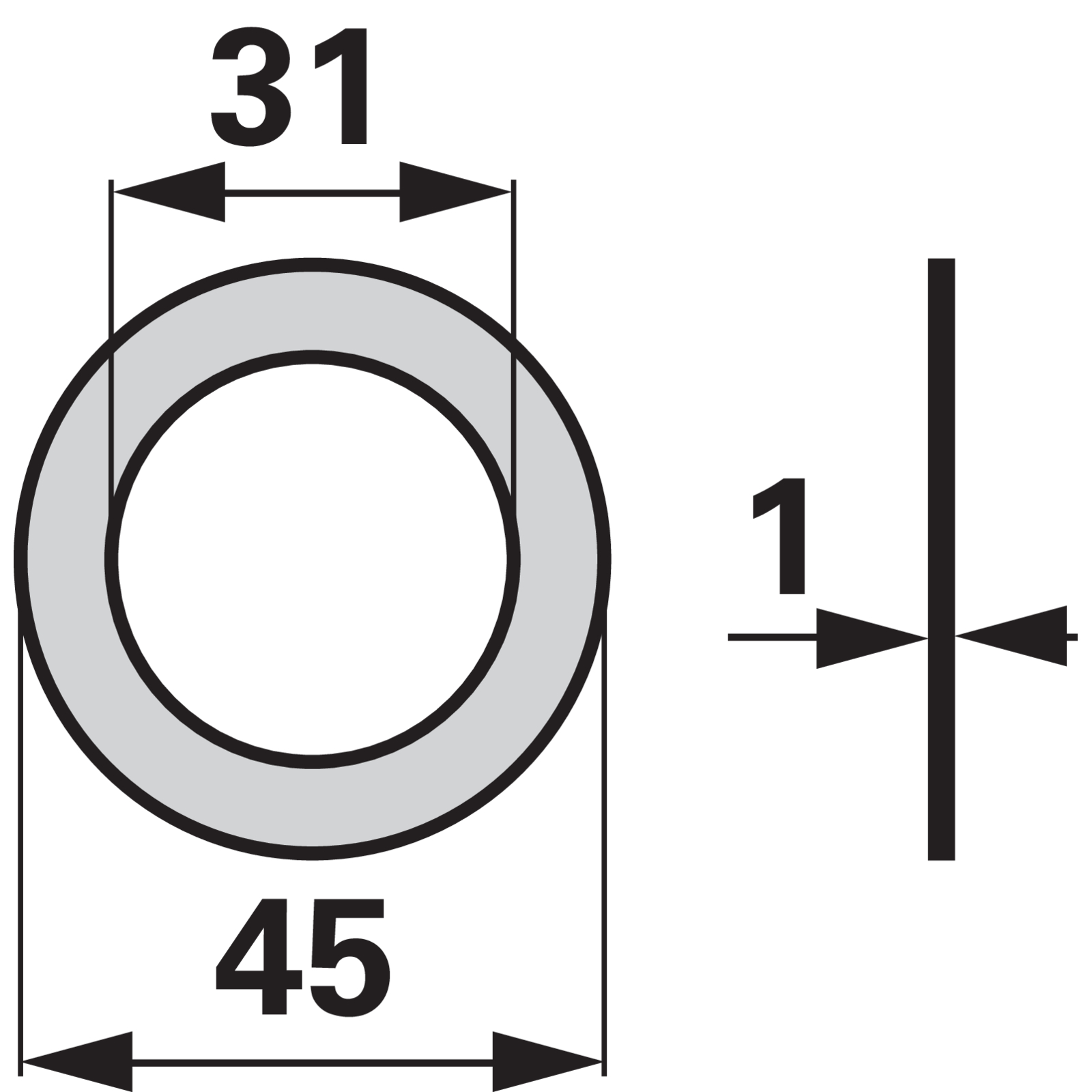 | Bezeichnung | Scheibe AD 45 x ID 31 x S 1 mm Pöttinger 166.445 |