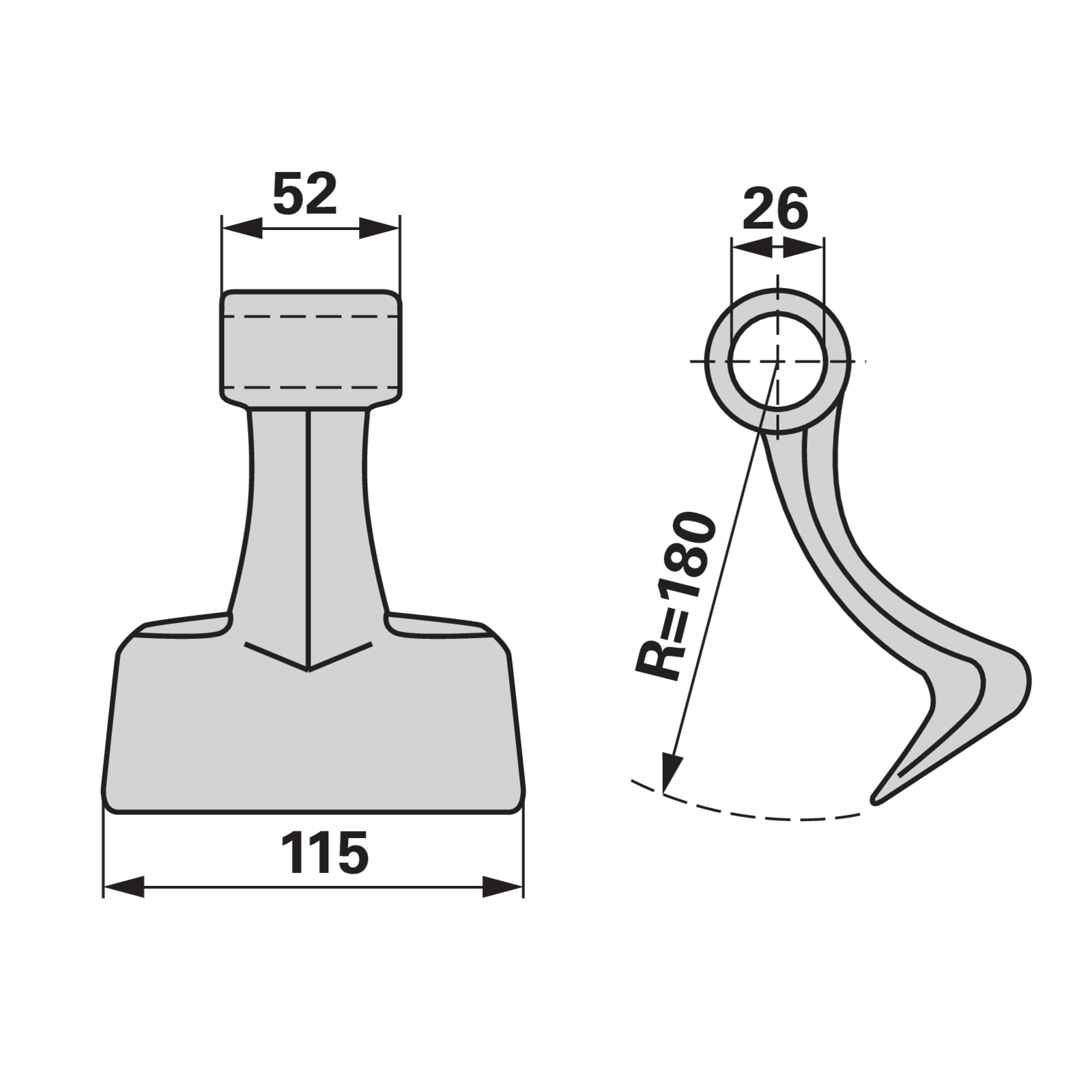 | Radius (R) | 180 mm |