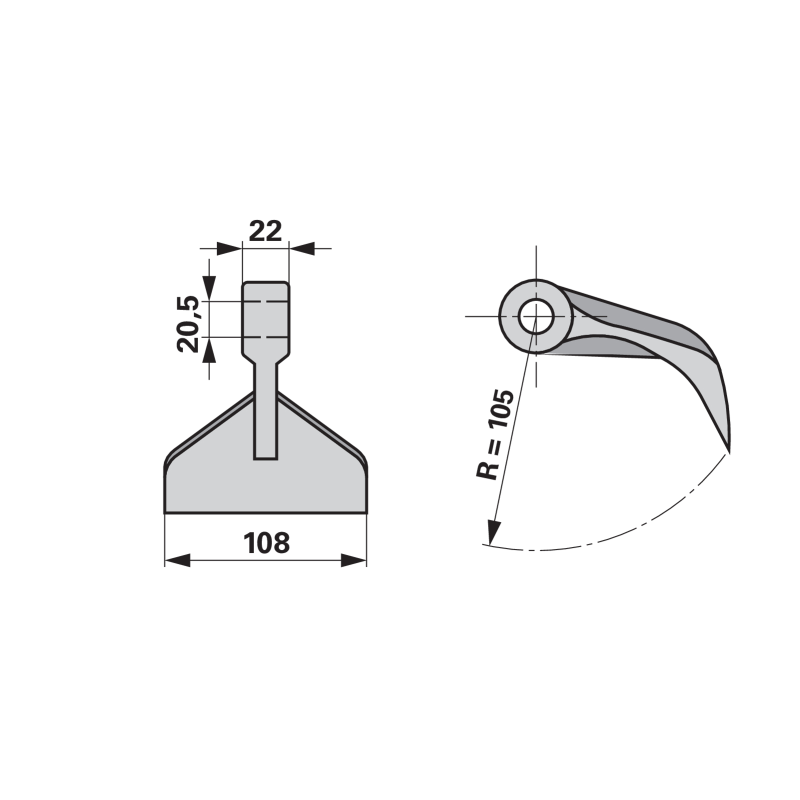 | Radius (R) | 105 mm |