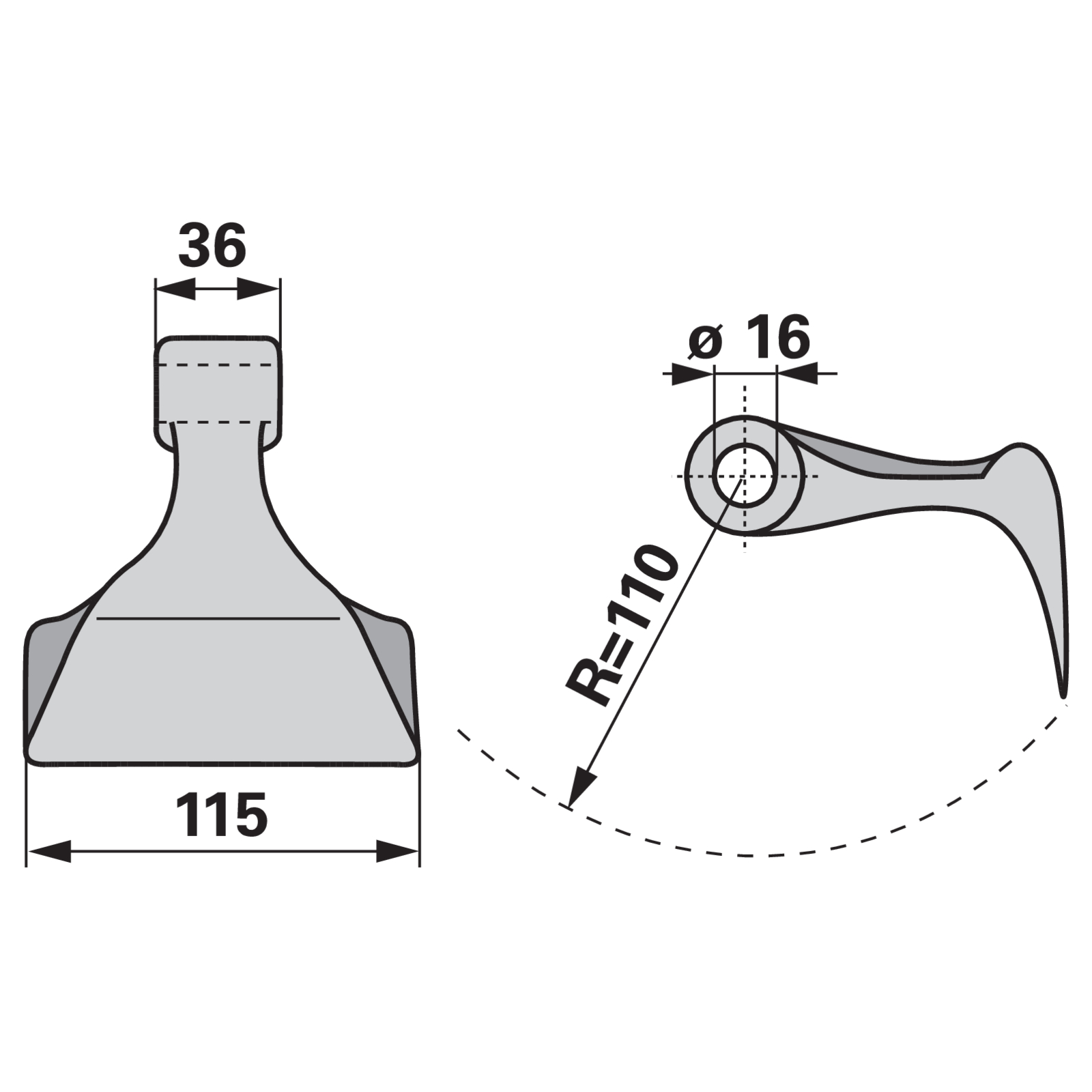 | Radius (R) | 110 mm |