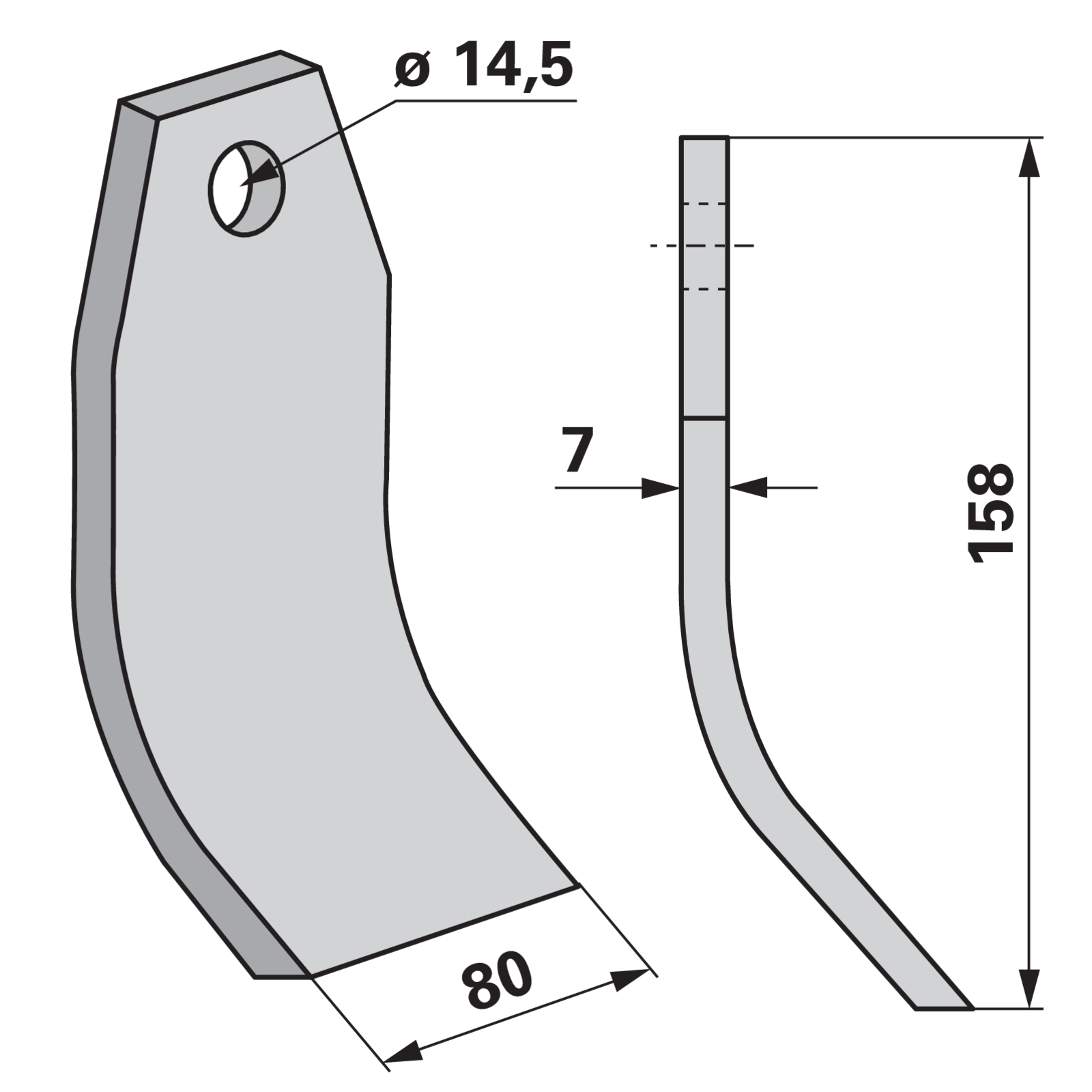 | Bezeichnung | Schlegelmesser 80x7 L=158 Lo 14,5 |