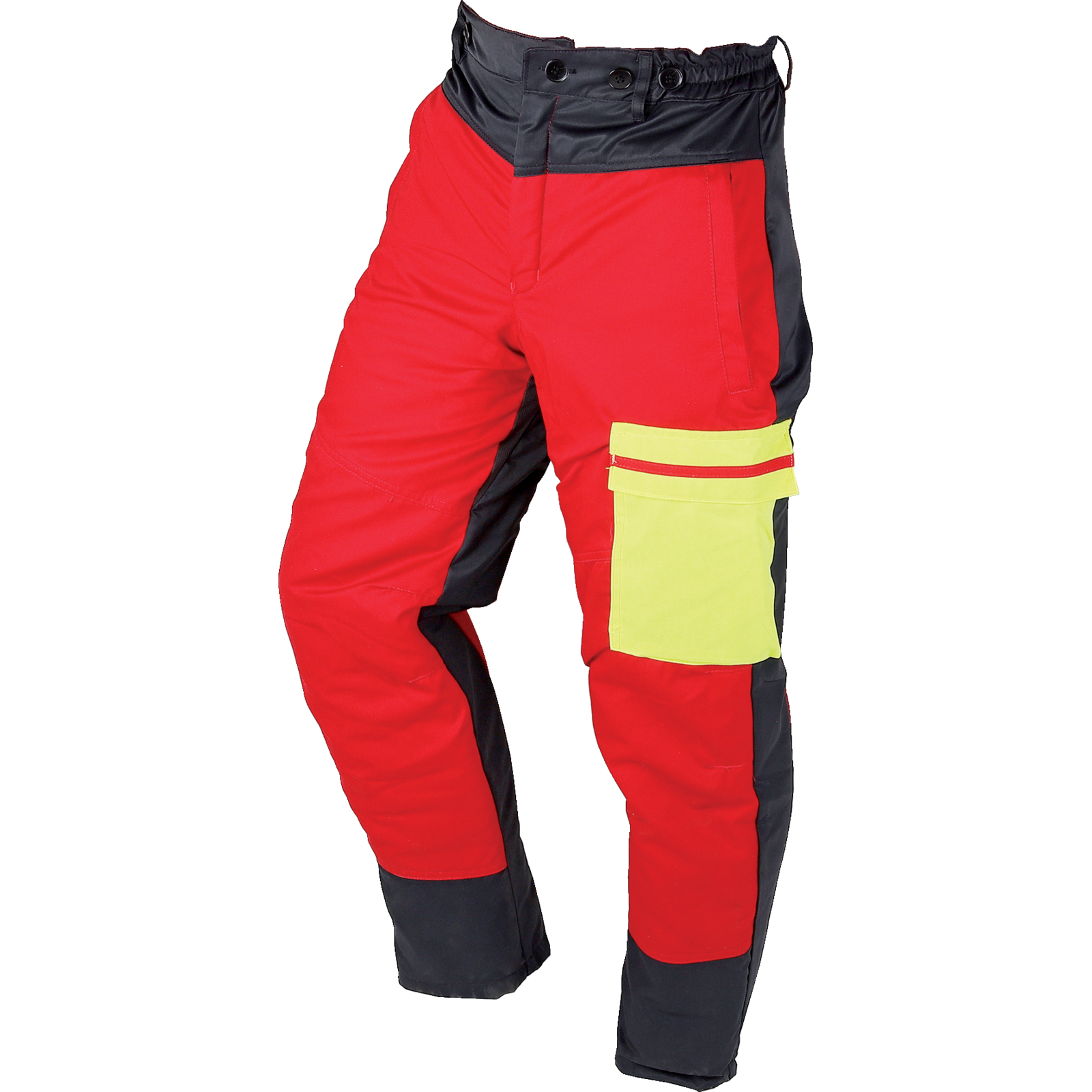 Schnittschutzhose Rot-Anthrazit-Leuchtgelb, Größe 54-56