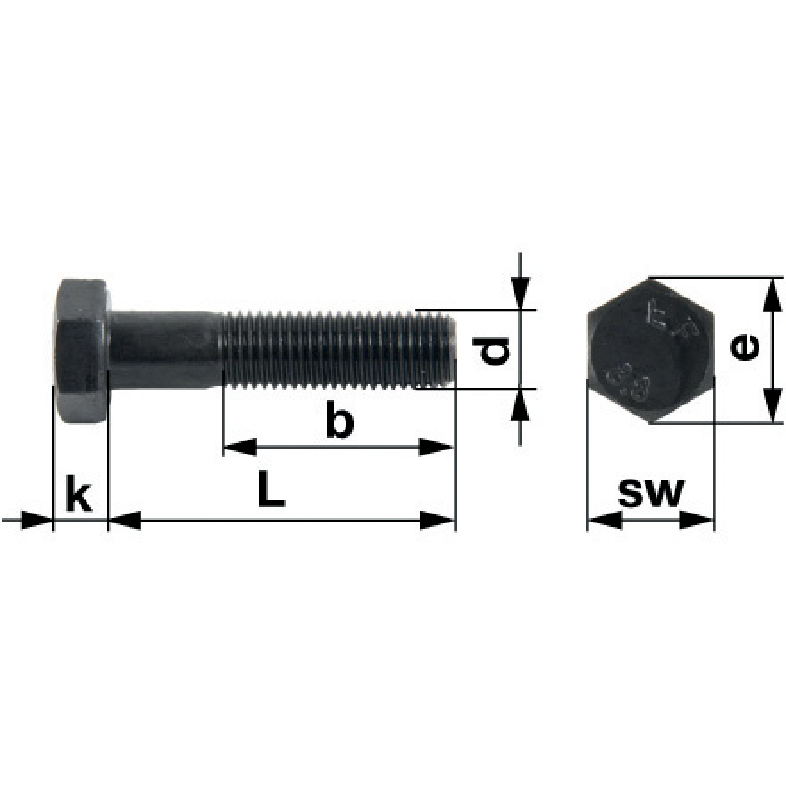 | Bezeichnung | Schraube M10 x 180 mm, mit Schaft, Güte 10.9 DIN931 |