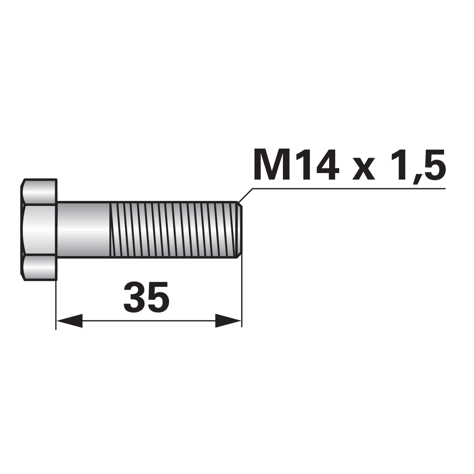 | Bezeichnung | Sechskantschraube M14 x 1,5 x 35 mm, Güte 12,9 |