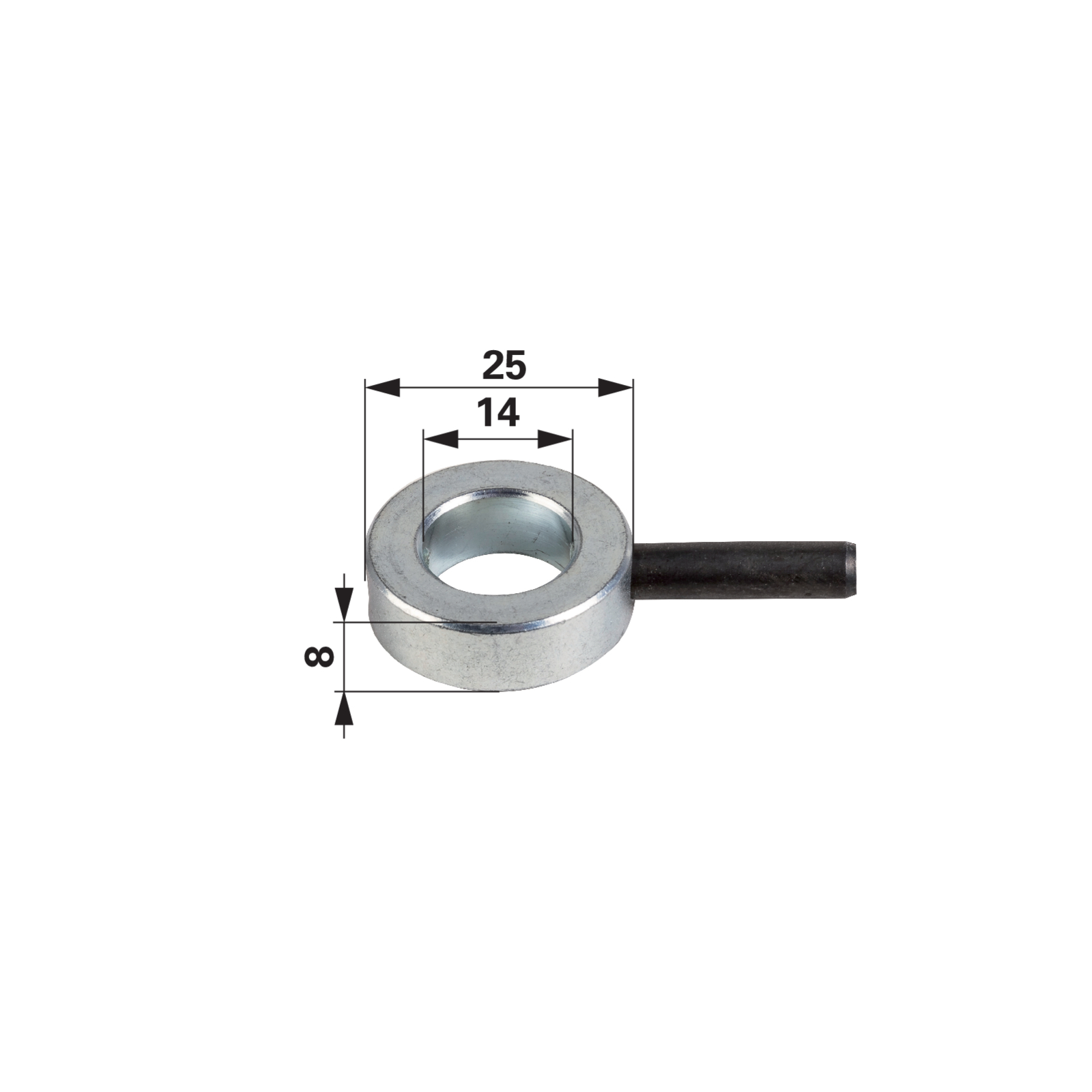 | Bezeichnung | Stellring AD 25 x ID 14 x H 8 mm, mit Spannstift |