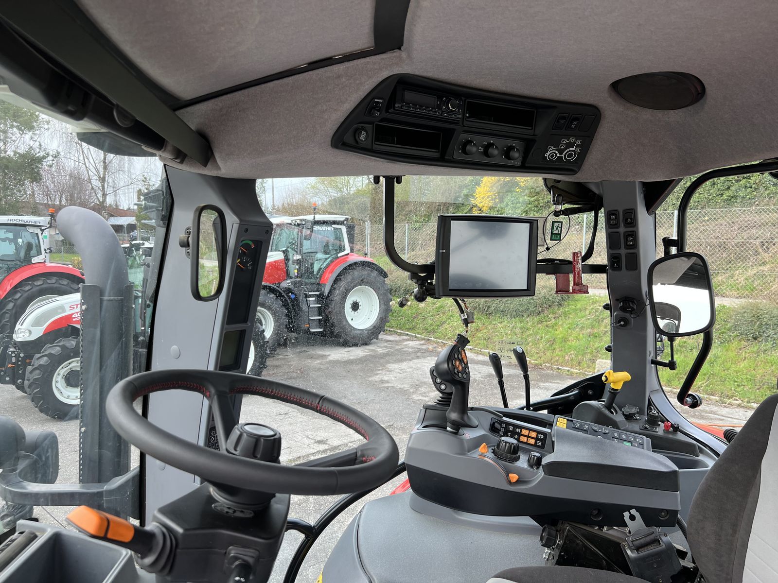 – Monitorhalterung am rechten Seitenfenster mit elektrischem USB Anschluss, zusätzlichem Steyr 700 Monitor und Universalhandyhalterung
