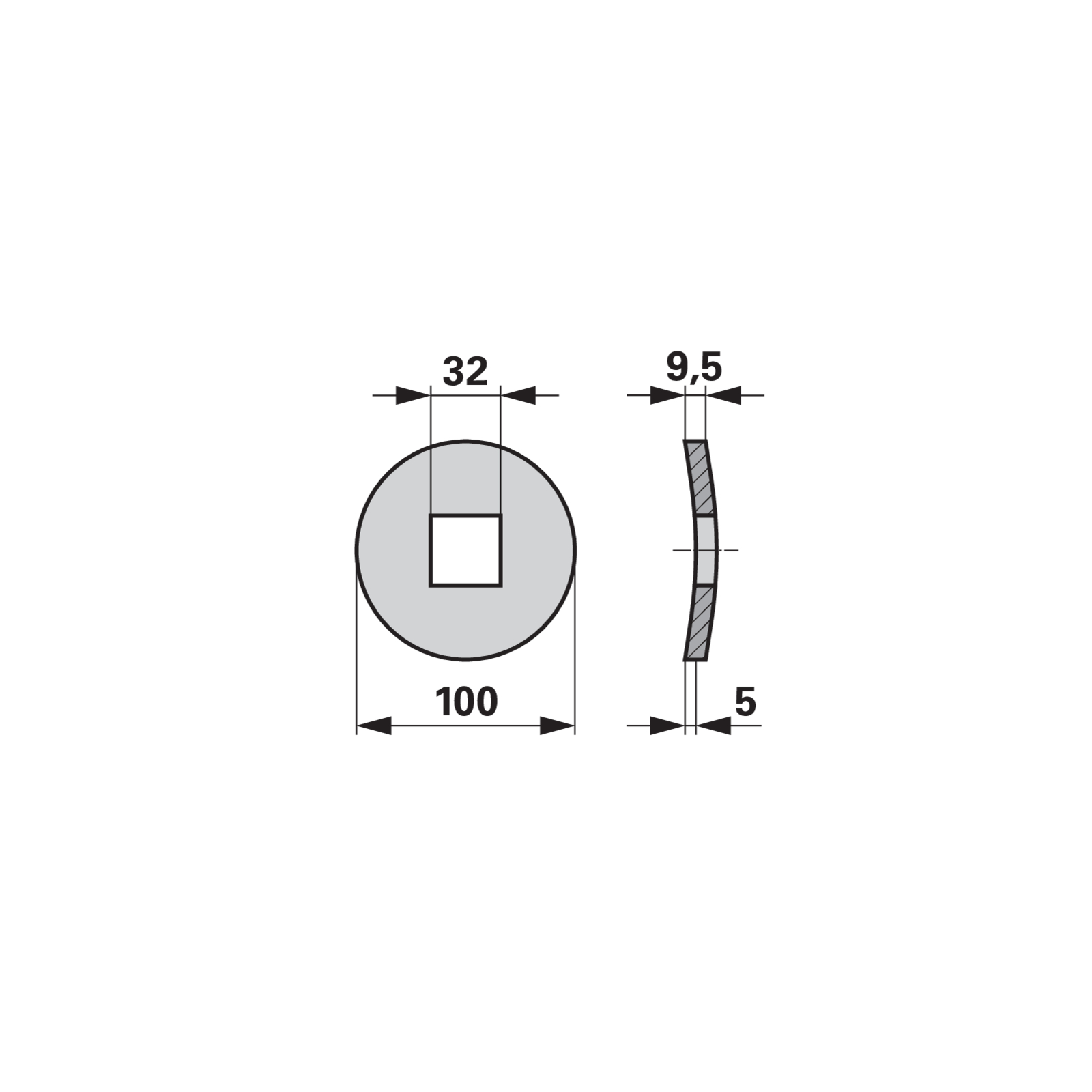 | Vierkantloch | 32 x 32 mm |