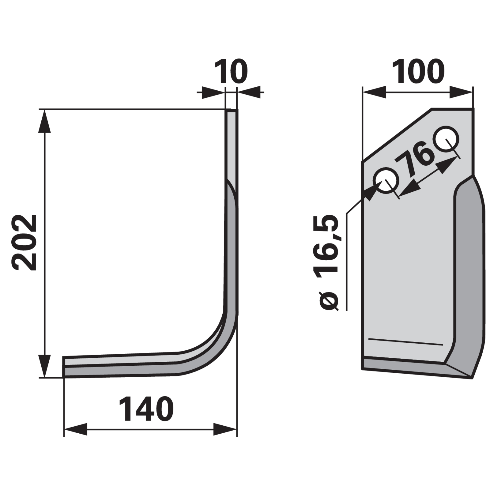| Bezeichnung | Winkelmesser links, 100 x 10 mm, Länge 202 mm, Breite 140 mm Lochabstand 76 mm |