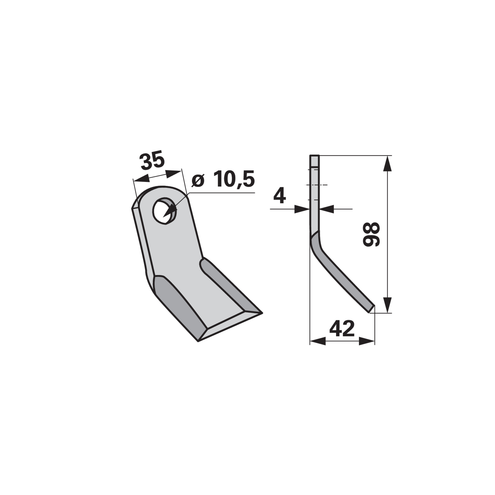 | Bezeichnung | Y-Messer 35 x 4 x 98 mm, Loch 10,5 mm |