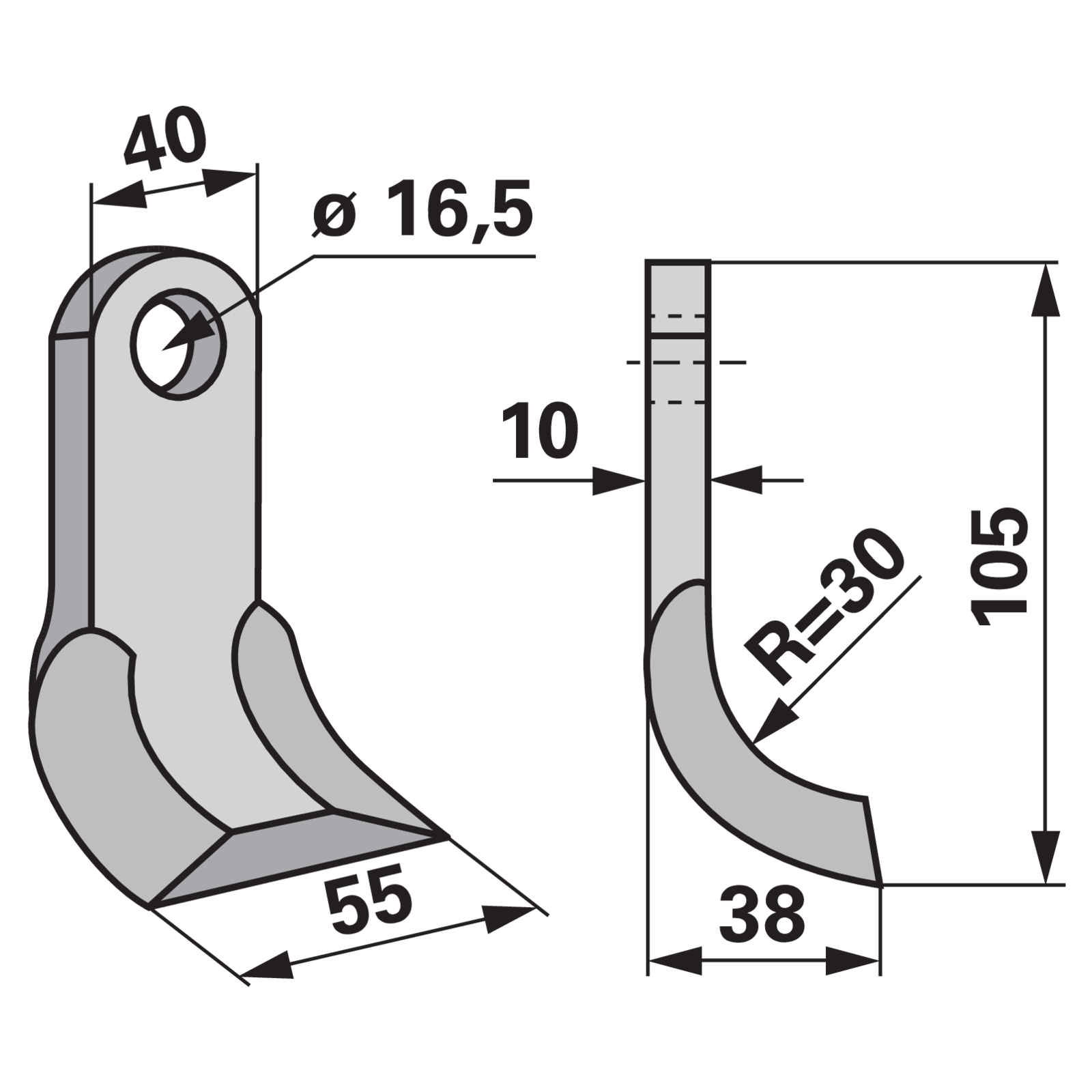 | Bezeichnung | Y-Messer 40 x 10 x 105 mm, Loch 16,5 mm |