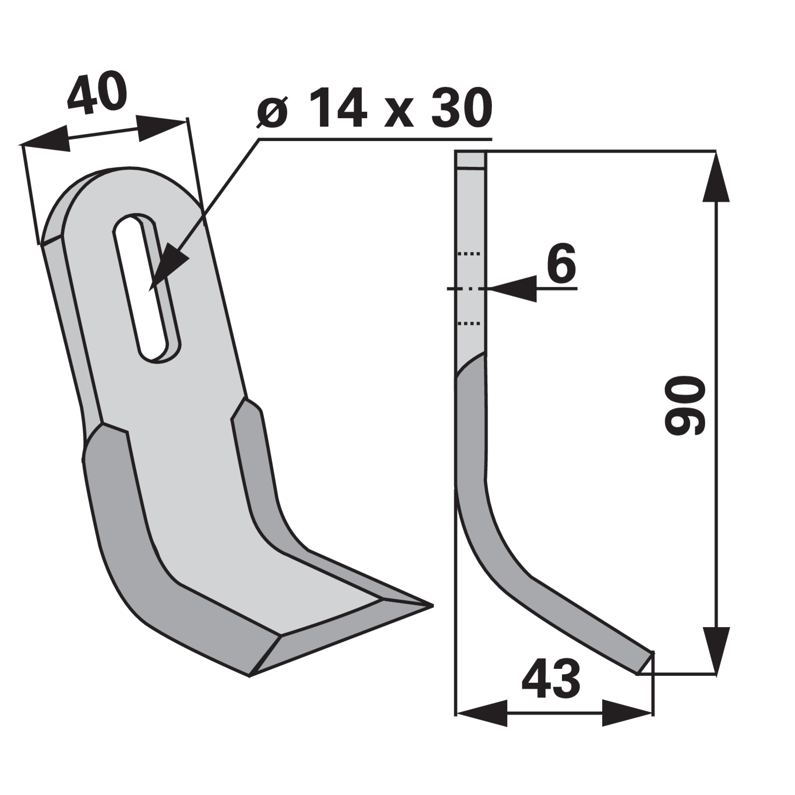 | Bezeichnung | Y-Messer 40 x 6 x 90 mm, Loch 14 x 30 mm |