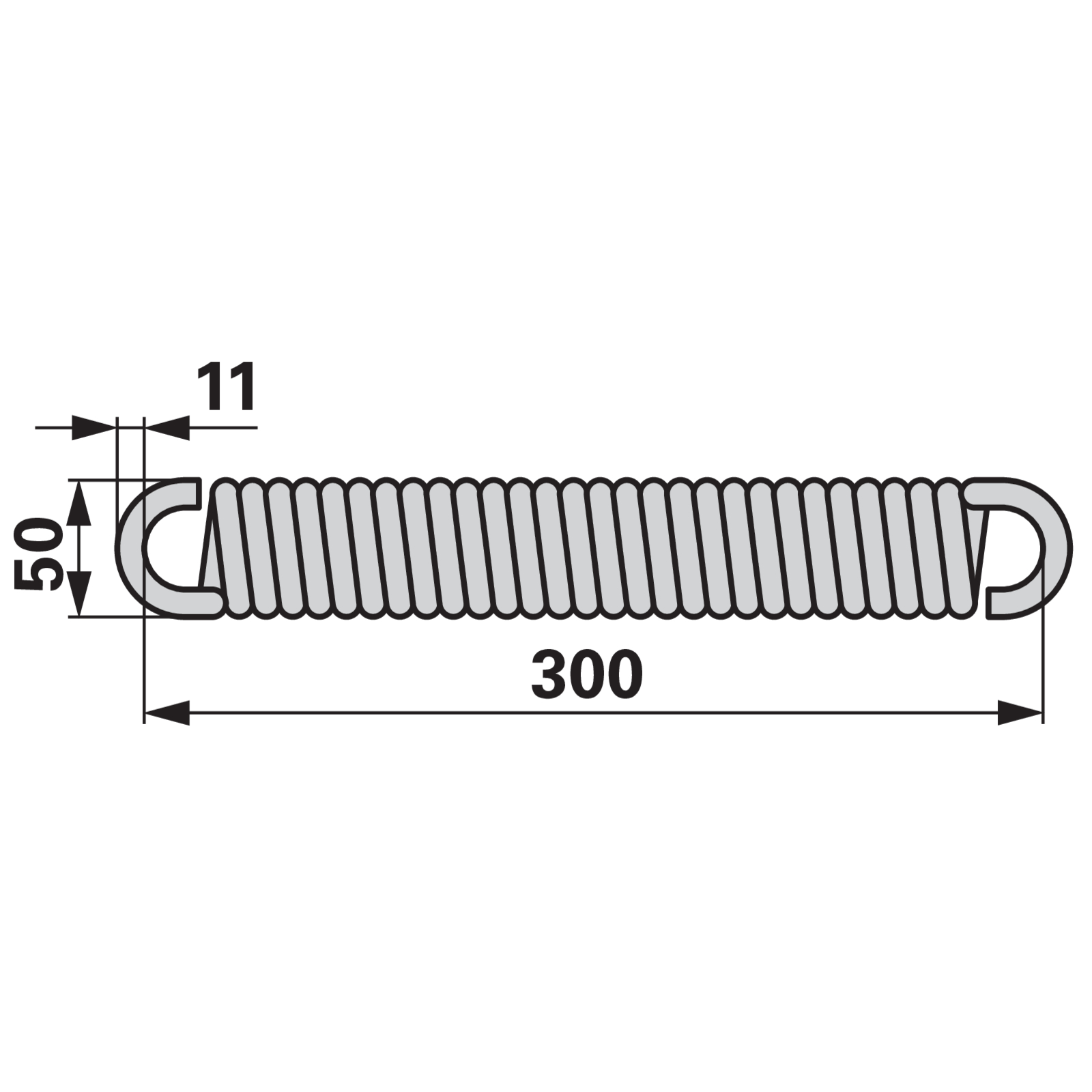 | Bezeichnung | Zugfeder 50 x 11 x 300 mm |