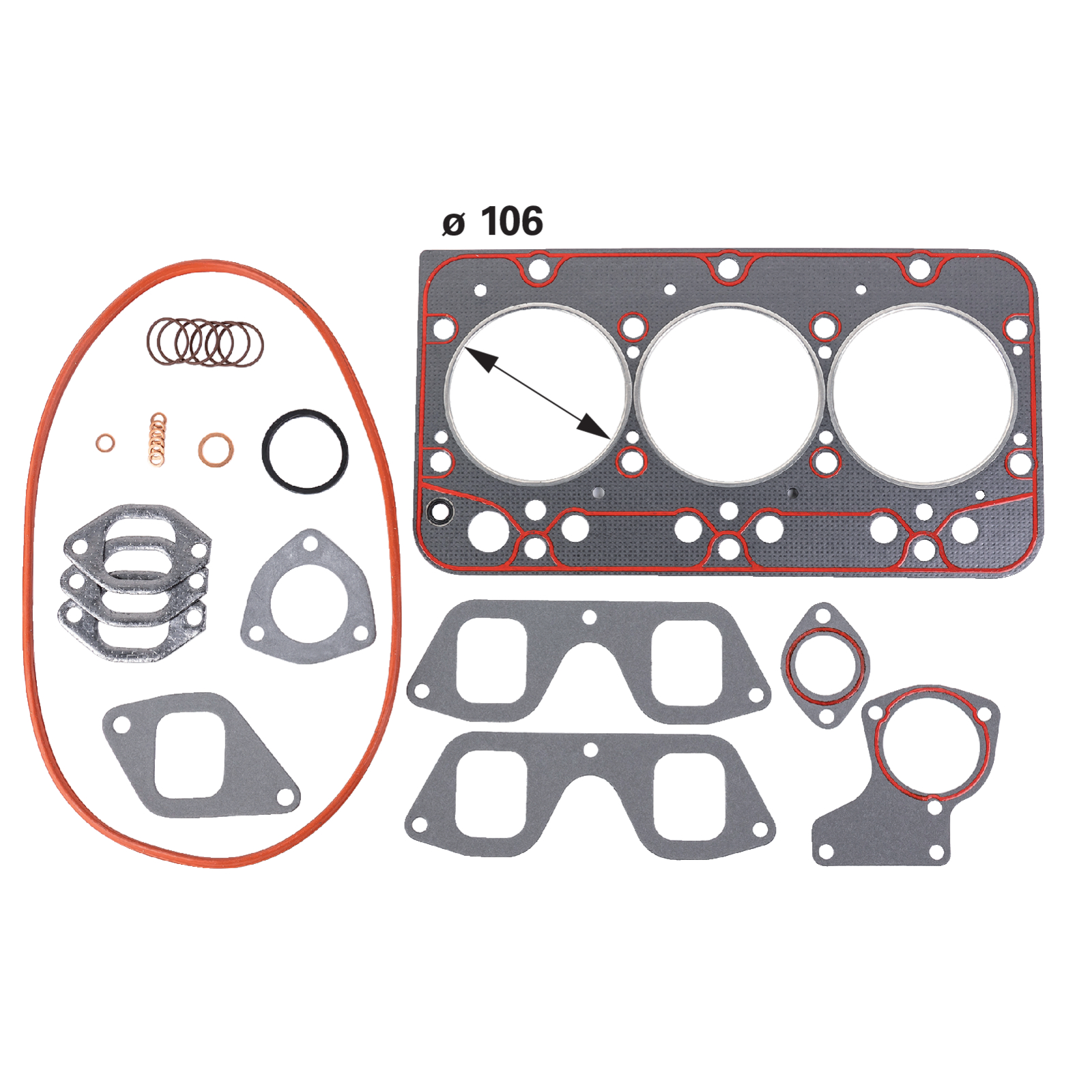| Bezeichnung | Zylinderkopfdichtsatz Durchmesser 106 mm anstelle von New Holland 1940178 |